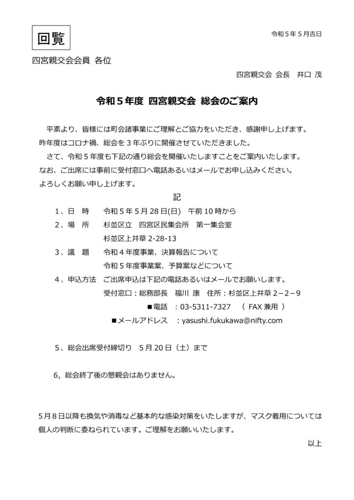 【令和6年 四宮親交会 総会のご案内】