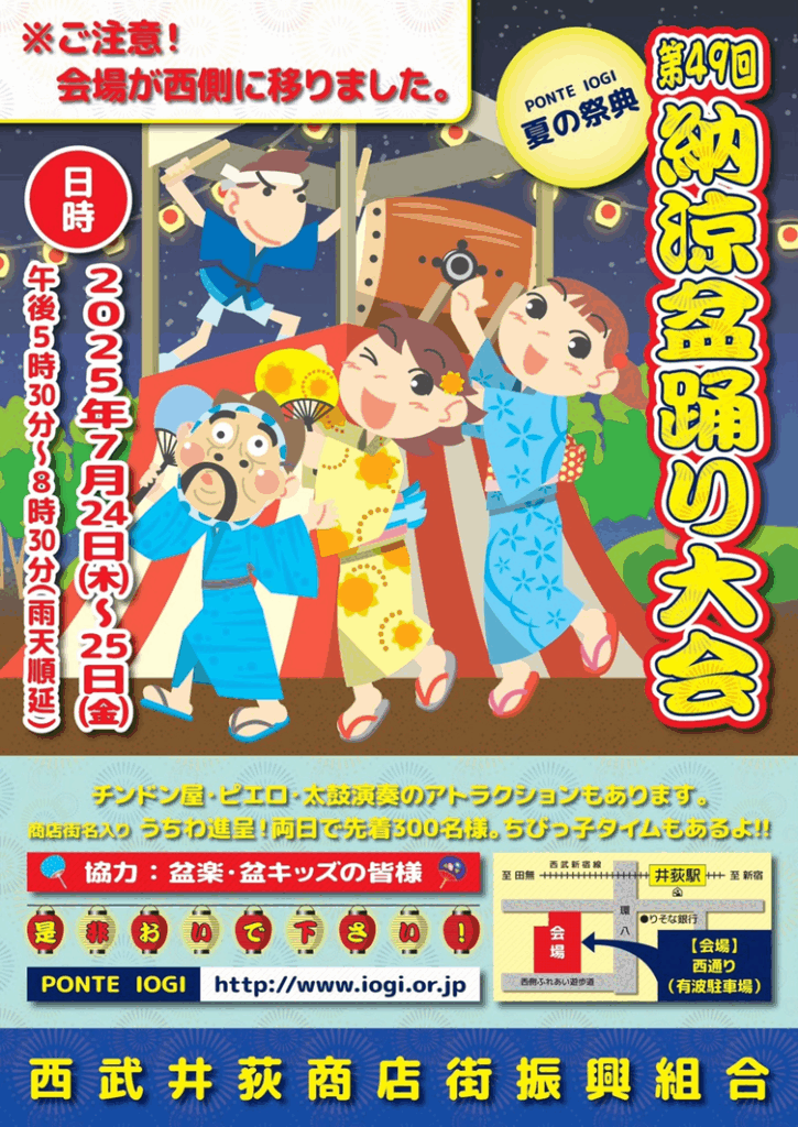 西武井荻商店街振興組合より、納涼盆踊り大会のご案内をいただきました。